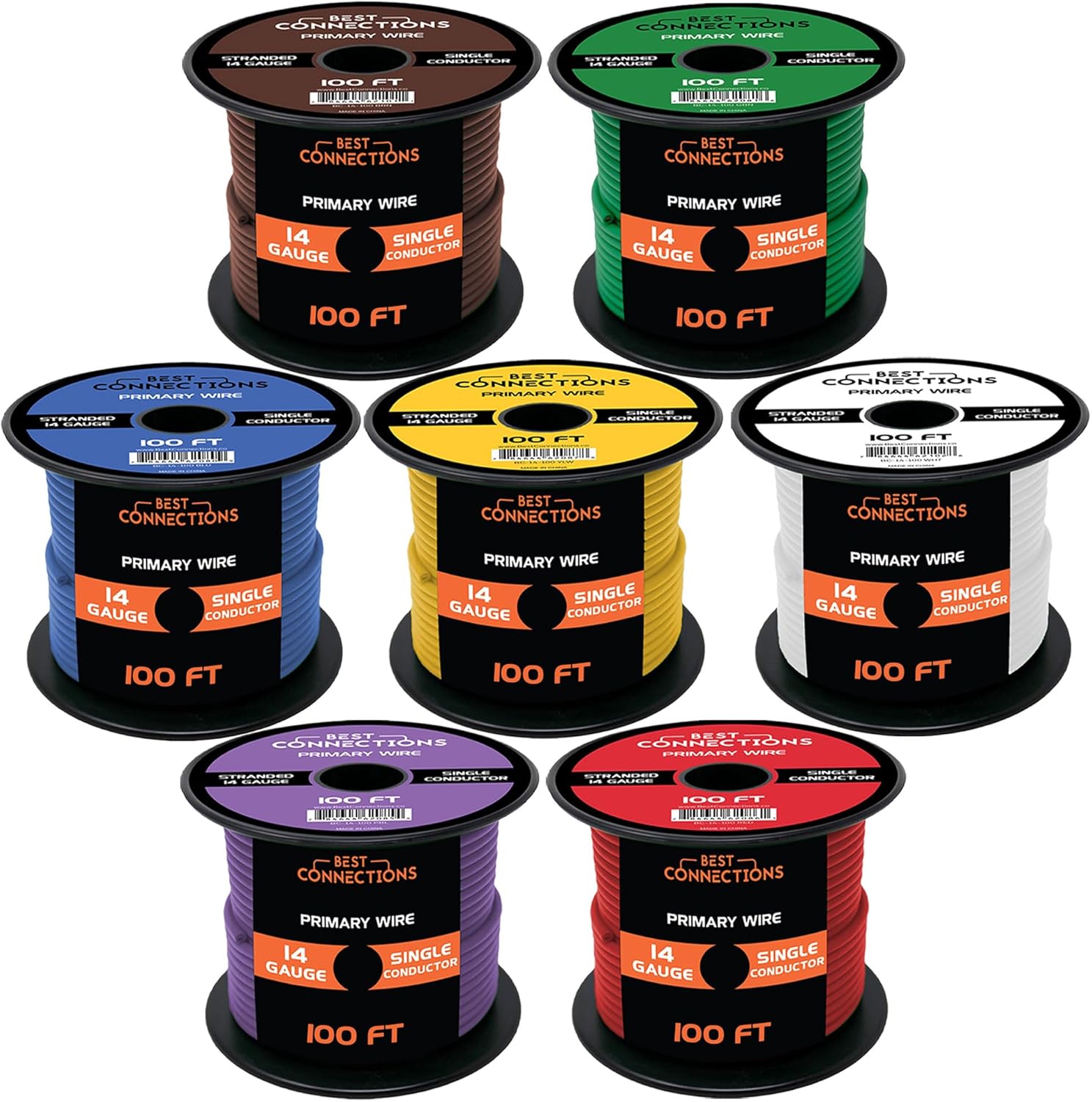 14 Gauge Automotive Primary Wire (100ft Each – 7 Color Bundle Set)– Durable Primary/Remote, Power/Ground Electrical Wire for Trailer, Car Audio, Lighting Circuits – 700ft Total